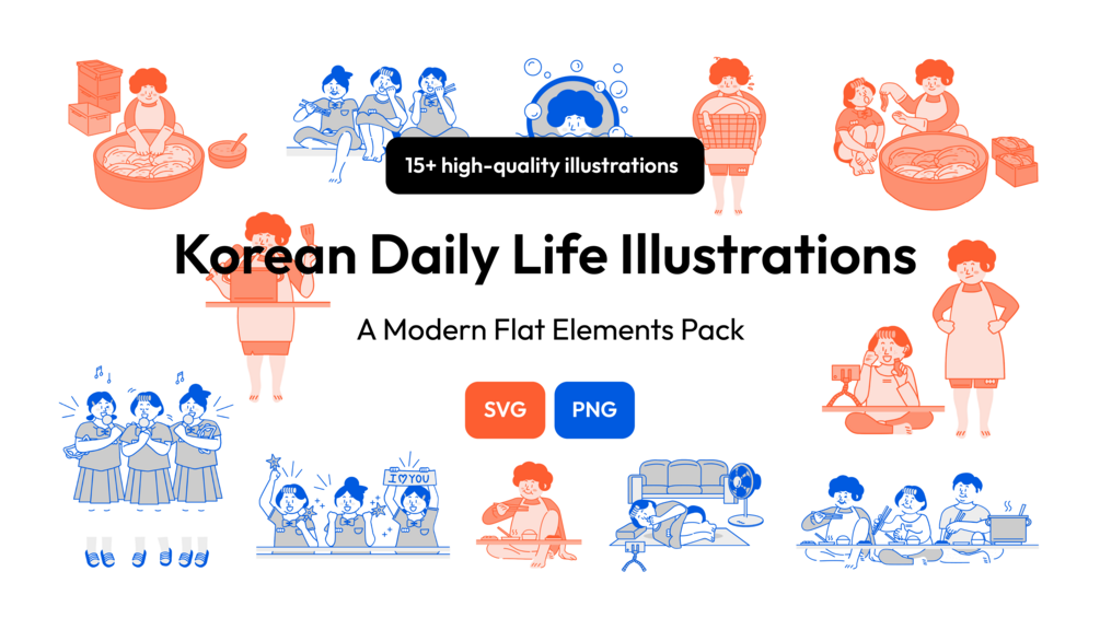 🇰🇷 Korean Daily Life Illustrations: A Modern Flat Elements Pack 🇰🇷